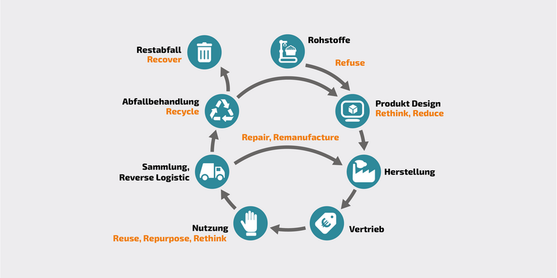 Die R-Strategien – von Refuse bis Recover – bieten Unternehmen eine strukturierte Analyse- und Handlungsmatrix zur Umsetzung zirkulärer Lösungen. Beginnend über die Ressourcenentnahme, über das Produktleben bis hin zum End-of-Life fördern sie die Reduktion von Primärrohstoffen und den Einsatz von Sekundärmaterialien und ermöglichen eine systematische Transformation hin zur zirkulären Wertschöpfung.