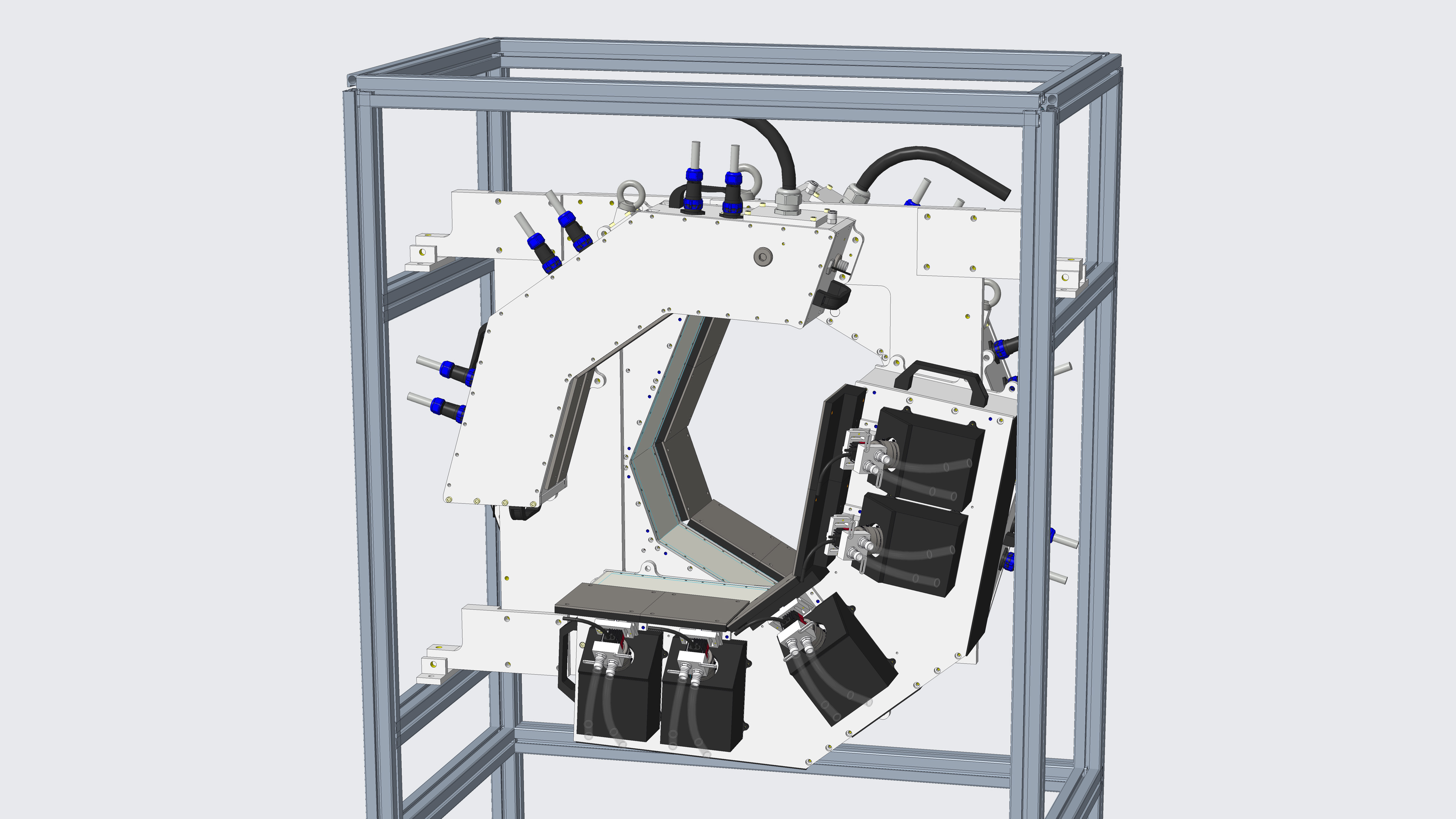 CAD-Modell des reinen Online-Röntgen-CT-Messsystems ohne Verkleidung und Röntgenschutzvorrichtung. (Foto: Fraunhofer IIS)
