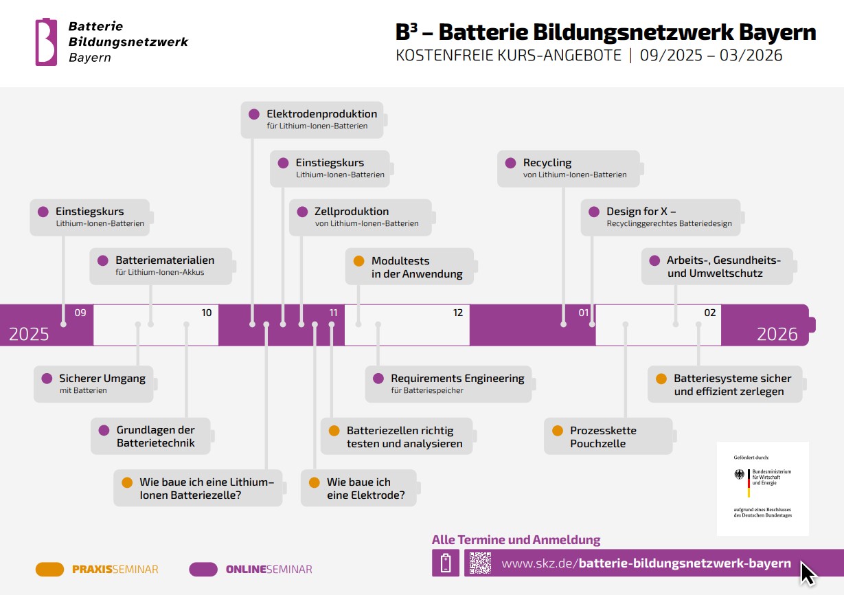 Kostenfreies Kursangebot vom B³ - Batterie Bildungsnetzwerk Bayern ab Herbst 2025 (Quelle: SKZ)