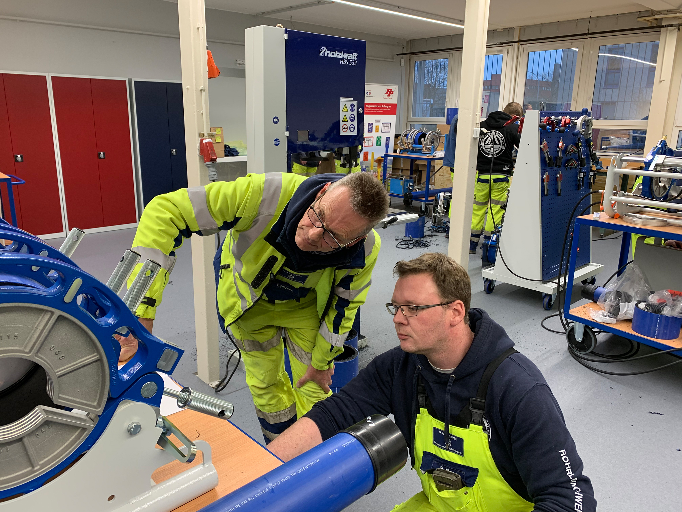 Die Kurse richten sich an Rohrleitungsbauer, die regelmäßig ihre Qualifikation für das Schweißen von Kunststoffrohren auffrischen müssen. Diese Schulungen sind entscheidend für die Qualität der Schweißnähte und damit für die Sicherheit der Gas- und Wasserversorgung.