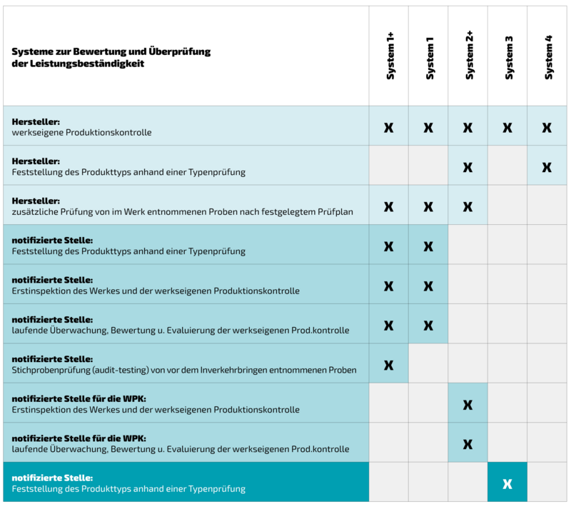 Die CE-Kennzeichnung zeigt, dass ein Produkt allen geltenden Anforderungen der Bauproduktenverordnung entspricht. Je nach Produkttyp und Sicherheitsrisiko gelten unterschiedliche Konformitätsbewertungsverfahren: