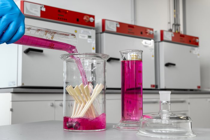 Für physikalisch-chemische Prüfungen werden verschiedene Arten von Probenmaterialien eingesetzt, um deren Eigenschaften und Wechselwirkungen mit anderen Substanzen unter verschiedenen Bedingungen bewerten zu können. Typische Proben umfassen Kunststoffe in Form von Granulaten, Halbzeugen, Formteilen oder Folien. Die Auswahl der Proben und die Probenmenge hängen von den Anforderungen der Tests ab, beispielsweise ob lediglich chemische oder physikalisch-technologische Eigenschaften untersucht werden sollen. Die Proben sollten repräsentativ für den tatsächlichen Anwendungsbereich sein, um realistische Ergebnisse zu erzielen und müssen außerdem in der Regel äußerst sorgfältig vorbereitet werden, um exakte Messergebnisse sicherzustellen, z.B. durch Schneiden, Zerspanen oder Schleifen.