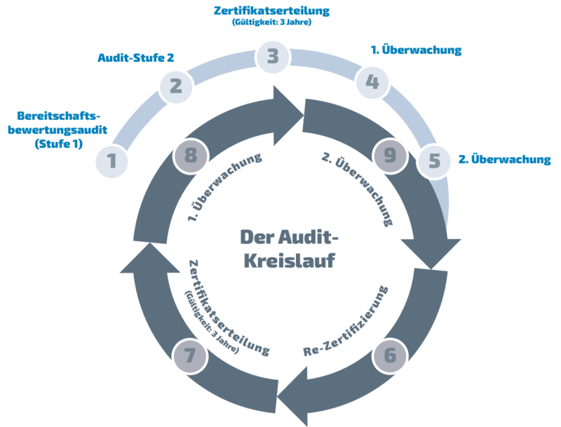 Zertifikatserstellung (3-jährige Laufzeit) - 8-9) Jährliche Überwachungen, Vor-Ort-Audits (mit anschließenden Auditberichten)